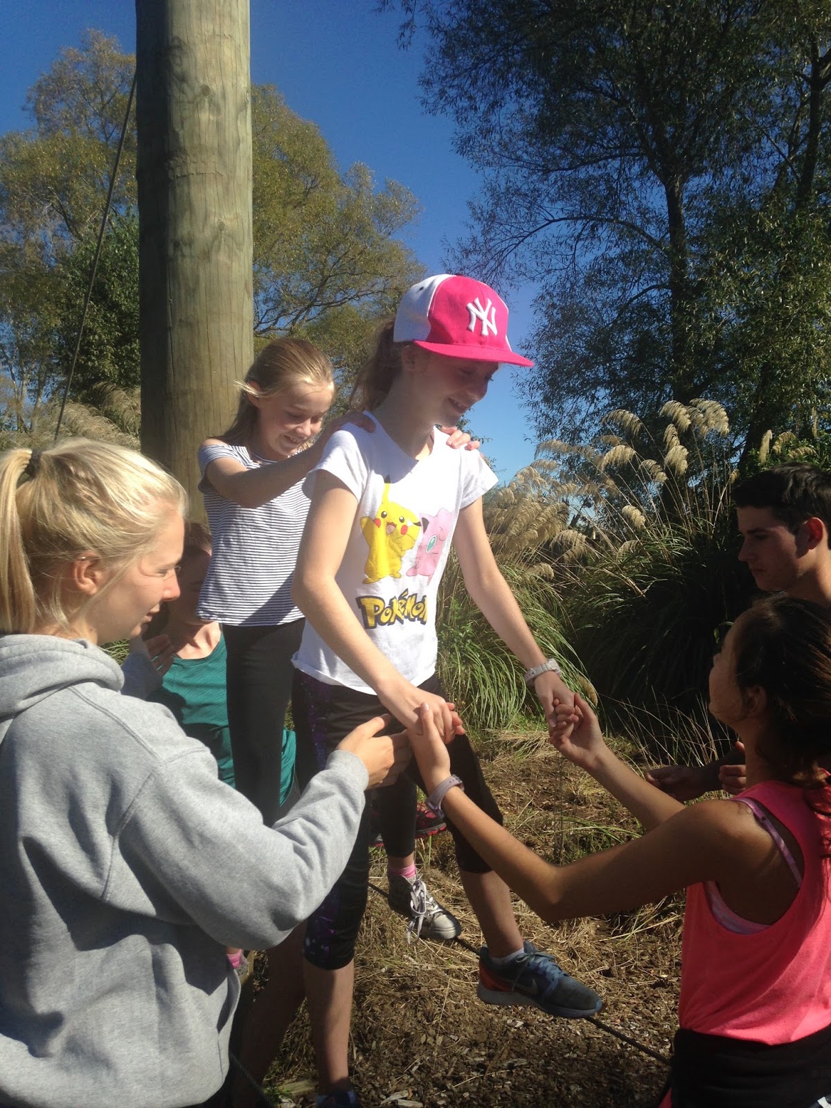 On Monday, the year 7 and 8's went to the Groynes for our William Pike Challenge. We were going to do high ropes and low ropes and did some teamwork exercises. It was really fun doing the teamwork exercises because it was something new that I haven't really done before.